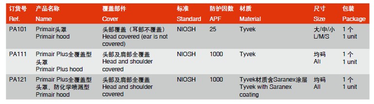 • 霍尼韦尔Primair 系列头罩结构轻巧,PA111/PA121重量仅为180g,PA101重量不超过