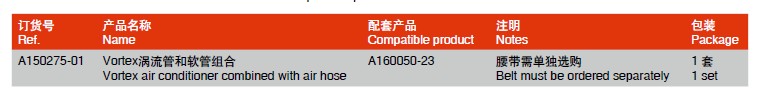 • 在供气式长管呼吸系统中,可与头罩类产品配合使用,用于冷却或加热空气,提高用户