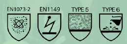 产品达到EN1073-2:2002防放射性微粒穿透标准的要求。