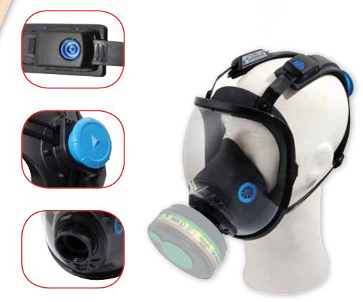 硅胶全面罩,独特的一键式旋钮调节,佩戴、脱卸快捷,配套使用EN148-1型滤罐。