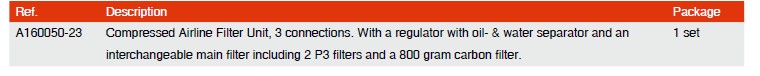 ?Consists of a regulator with oil- & water separator and an interchangeable main filter