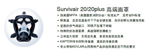 • 可选Survivair 20/20plus 面罩以满足较高要求客户需求