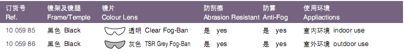 • Transparent“moulded-in-lens” brow for improved vision and comfort