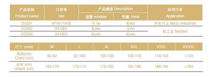 • 符合防护服欧洲标准