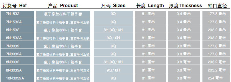 上一个产品:霍尼韦尔氯丁橡胶/Hypalon®材料干箱手套下一个产品:霍尼韦尔丁基合成橡胶干箱手套